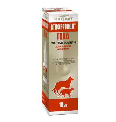 Отоферонол Голд - акарицидный препарат в форме ушных капель с противовоспалительным эффектом для профилактики и лечения отодектоза (ушной чесотки) собак и кошек.